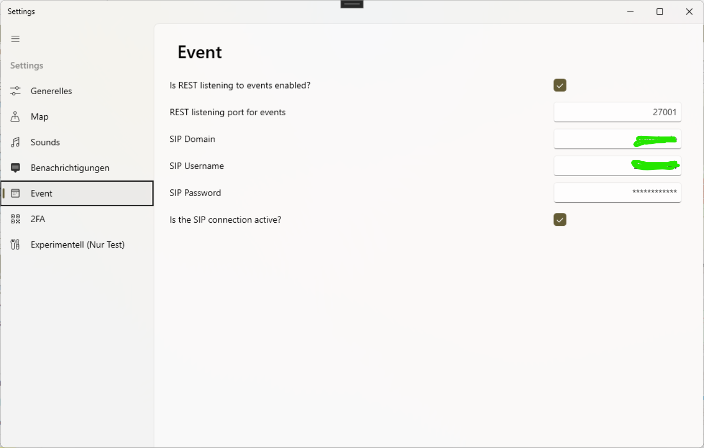 Passwort – Passwort des SIP-Accounts